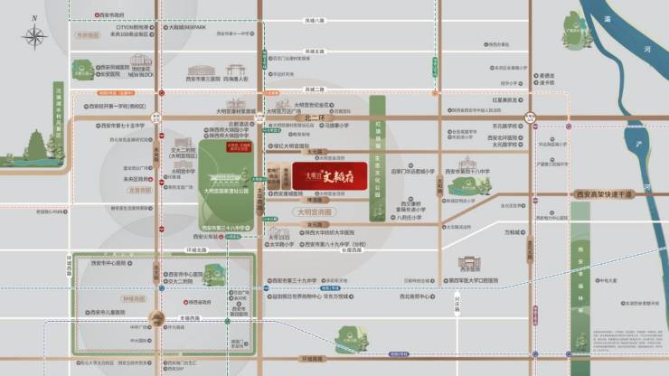 大明宫·文韬府项目位于西安市未央区太华路与太元路,央公园大明宫遗址公园,占据大明宫板块核心低密住区,是大明宫板块唯一一个全盘18层的纯粹小高层