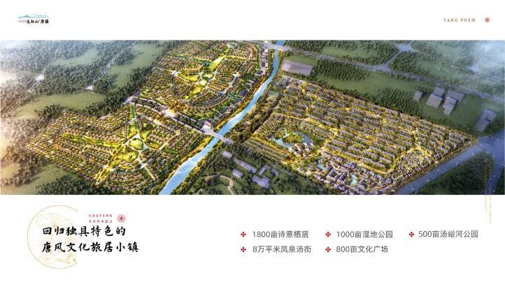 太白山·唐镇位于太白山麓北侧,毗邻国家AAAAA级旅游景区——太白山国家森林公园,规划总占地约1800亩,以诗仙李白和太白山为文化IP,以自然田园和温泉度假生活为载体,打造具有唐风唐韵的温泉旅居度假小镇。