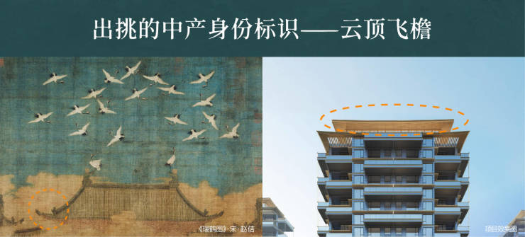 以宋代生活为模板,通过云顶飞檐、版引檐、擗帘杆、挂䈋、寻杖、平坐等中式建筑元素的现代演绎,实现功能与美学的平衡。