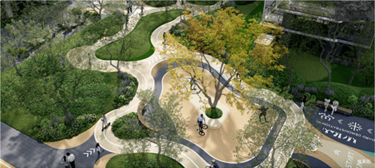 花海环绕、水景层叠,林下洽谈区掩映其中,营造可游、可赏、可谈的立体洄游体验。