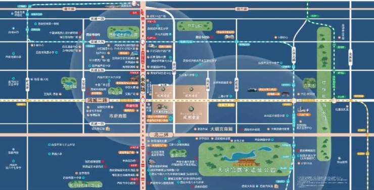 项目拥揽约15万m熙地港、约10万m大融城、约9.7万m未央国际:约7.16万㎡世纪金花、约11万m四海唐人街等商业综合体,超百万方商业配套集群,奢享无忧;坐拥甲等写字楼赛高国际、西安环球贸易中心等,约309座商务楼宇屹立于此;从事业到生活,从工作到购物,自如切换。