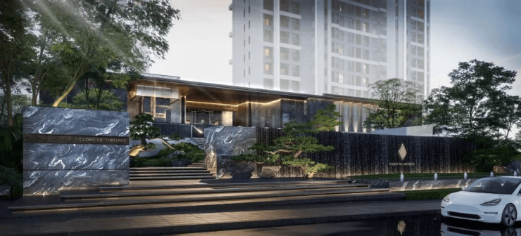 立面采用国际豪宅建筑的精奢风格,致敬顶级珠宝卡地亚的奢华美学,以“直线条和玻璃幕”构建现代美学。