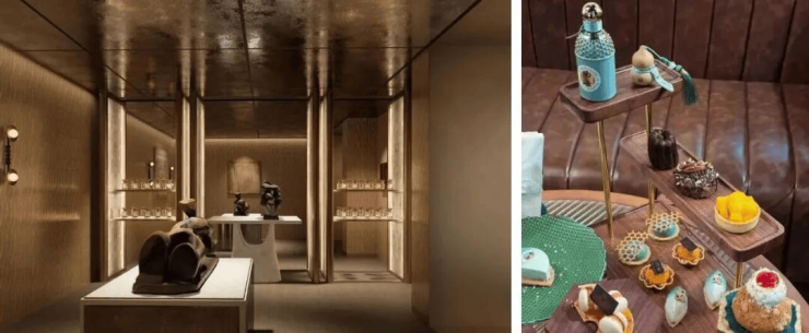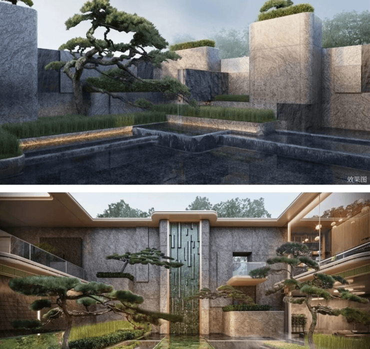 设计以柔美弧线贯穿空间,浅色石材与水墨纹理奠定雅致基调,金属细节点缀东方韵味。线条与造型融合韵律与精致,在当代风格中注入文化仪式感