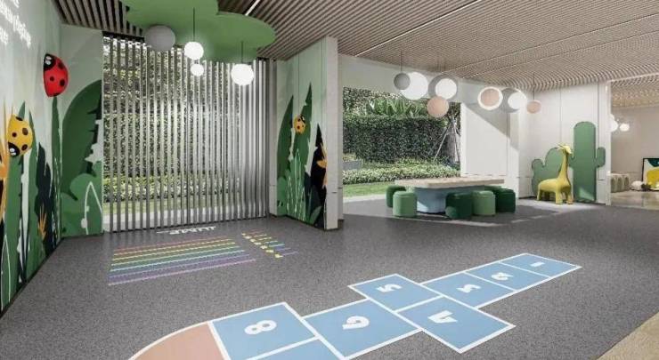 项目配建有约600㎡架空层,设置有万册图书馆/自习室/健身活力区/儿童活动区等等