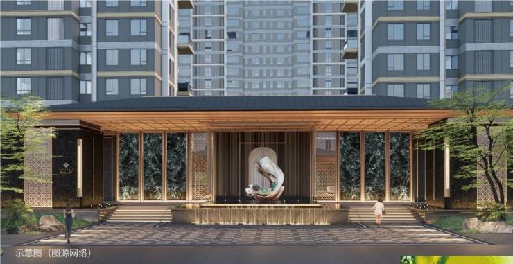 约7.9米挑高的[翡月之门],八扇PRADA绿奢石打造的景墙,巨型艺术雕塑,把封面感烘托到顶。世界顶级酒店才有的车马院,分流人、车、服务动线。