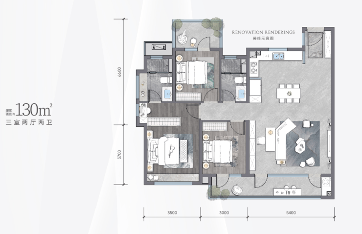 130㎡三室两厅两卫