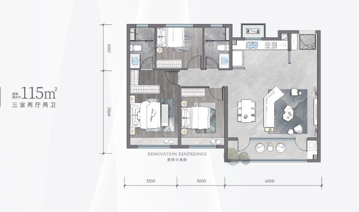 115㎡三室两厅两卫