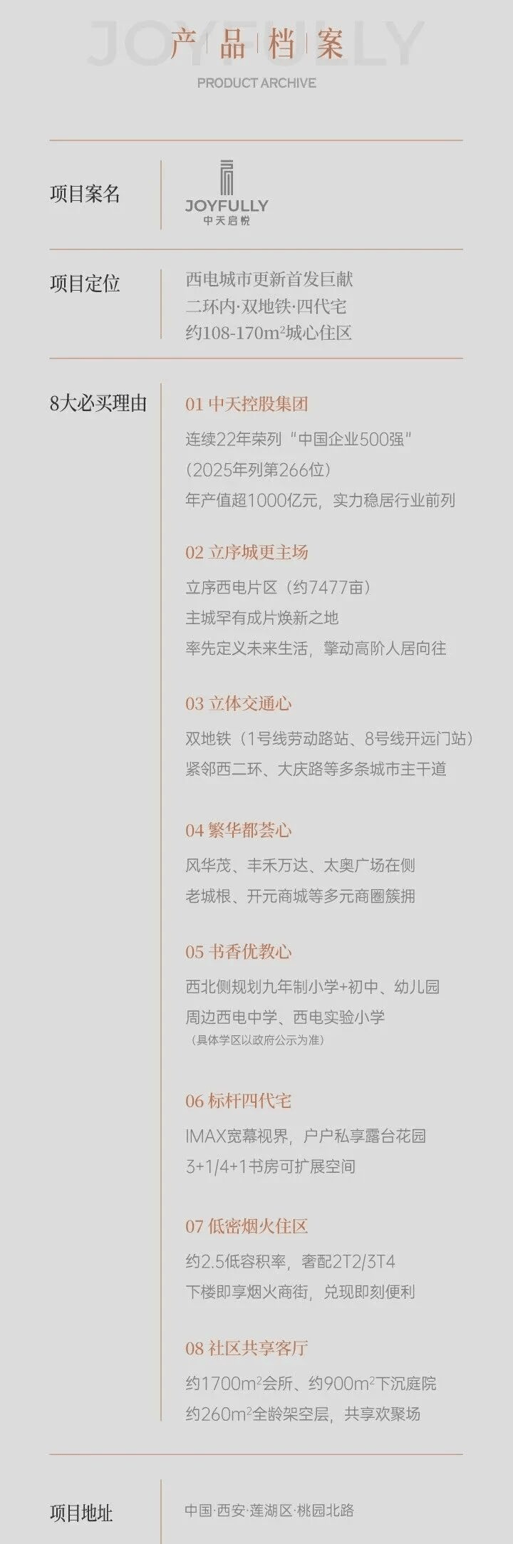 中天的开发模式是全产业链自营,拥有自己的甲级设计研究院、建材供应、施工建造、物业服务,彻底规避"设计与施工脱节、建材以次充好、交付延期”等行业痛点,如西安中天峯悦、中天宸悦项目均实现"提前交付+业主满意度超98%以上”