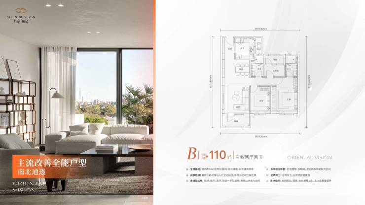 建面约110㎡三房两厅两卫