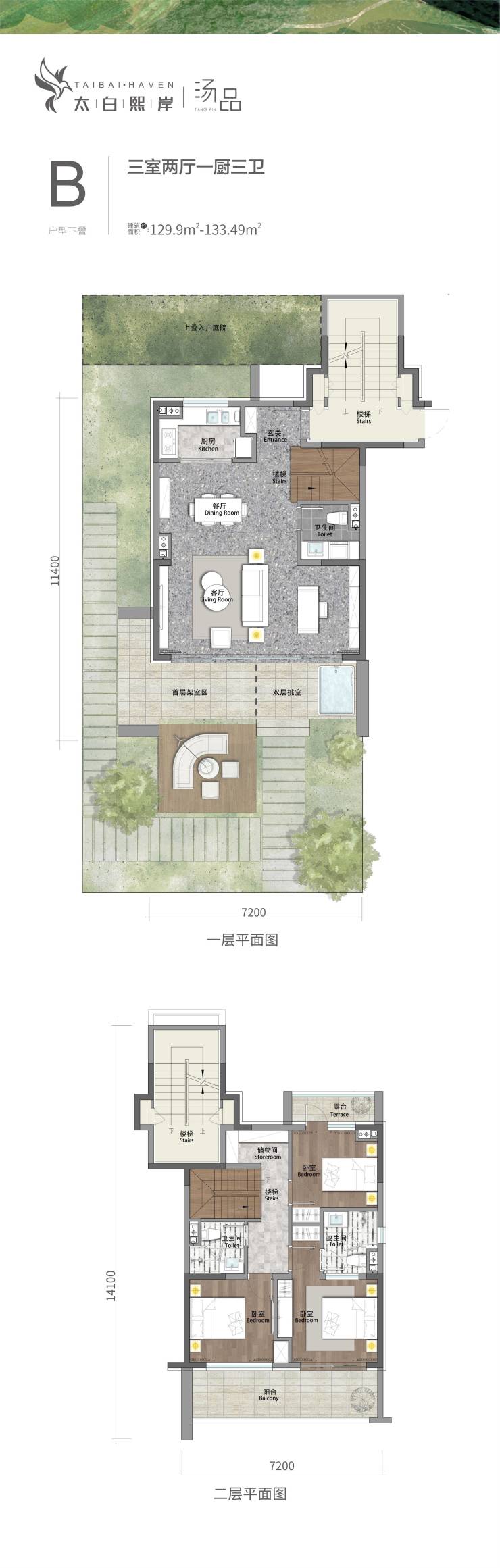 建筑面积约:113.36~133.41㎡
