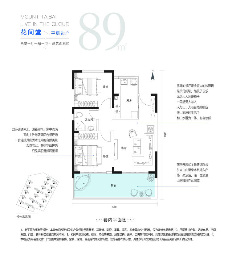 【花间堂】平层边户 · 两室一厅一厨一卫 · 建筑面积约89㎡