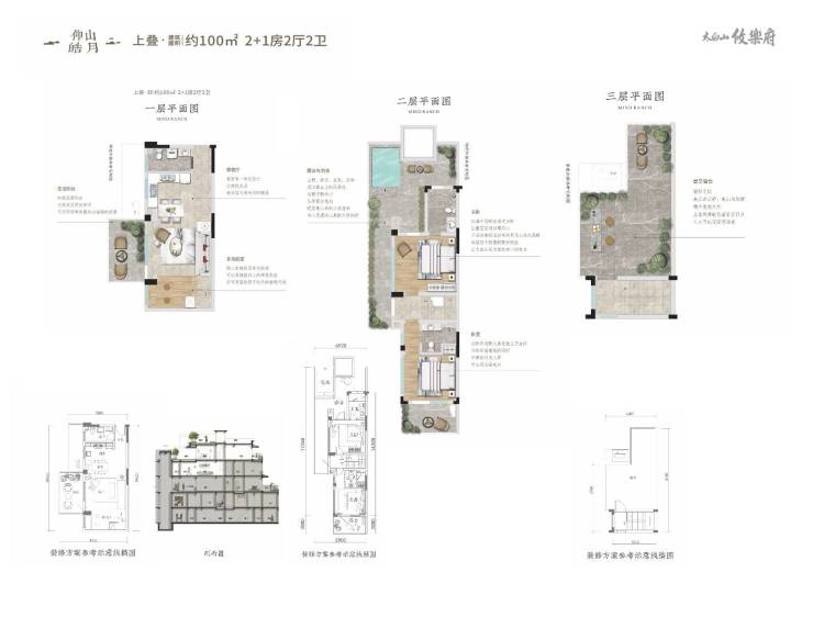 上中下叠拼户型,入户花园、星空露台,赠送面积最高约120㎡。
