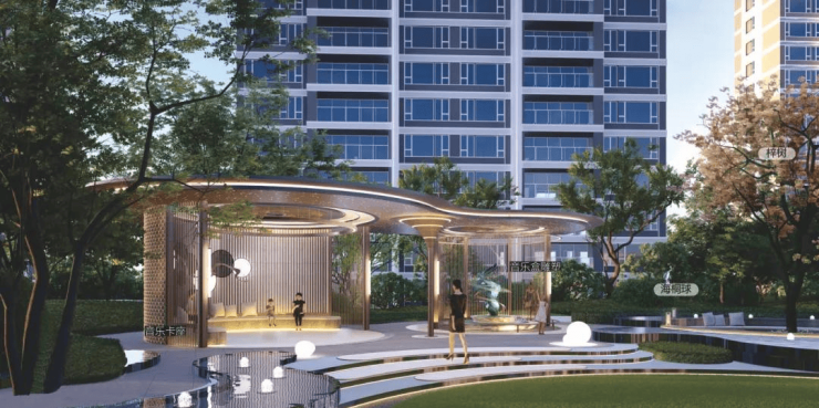 景观园林由山水比德执笔设计,以自然灵动、流动诗意、现代艺术为创作手法,规划“两轴一环,三庭九境”。打造艺术化的现代自然新山水生活场景,并通过空间的轴线仪式感层层递进将其动线串联。