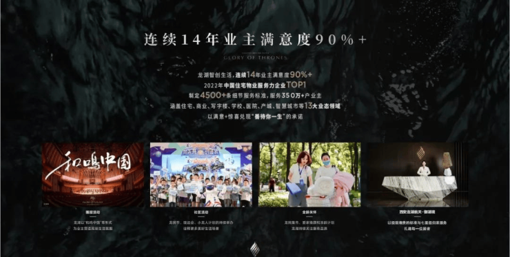 龙湖智创生活以“善待你一生”为宗旨,秉承“满意+惊喜”的服务理念,已进驻城市超100个,服务项目超1500个,为业主定制近4500+条服务细则,业主满意度连续13年超过90%以上。以智慧运营、智慧生活、智慧大脑、智慧空间四大模块,打造龙湖式智慧生活,便捷省心。历久弥新好物业,让生活圆满无憾。