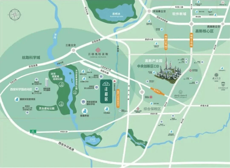 地铁6号线(已通车)咫尺可达西安南站地铁15号线(规划中)沣邑大桥|三星快速干道,立体网路环绕,10分钟抵高新