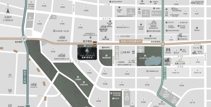 御湖境项目就位于经济中轴东长安街和历史中轴雁塔南路交汇处西南处,既占据了航天发展总部经济带,也处在世遗中轴文脉中心上,是航天一期寸土寸金的中央核心首善区。