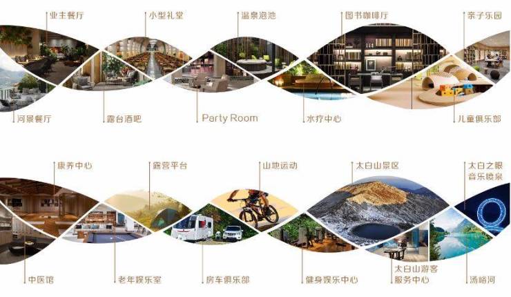 太白熙岸将打造有河景餐厅、露台酒吧、温泉泡池、水疗中心、健身娱乐中心、中医馆、儿童俱乐部、私人影院、小型礼堂、老年娱乐室、康养中心、PartyRoom、亲子乐园、山地运动、露营平台、房车俱乐部、图书咖啡厅等......