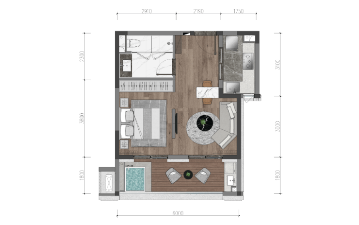 建面约54㎡一室一厅一卫