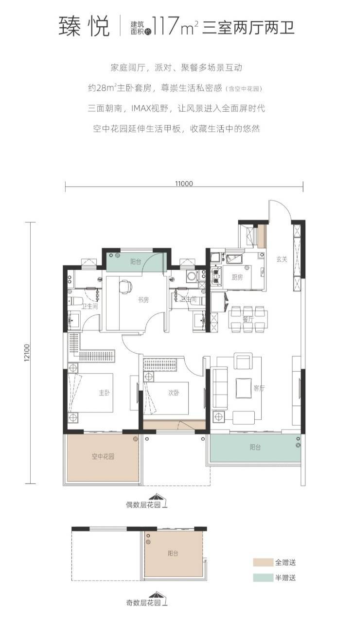 将庭院引入空中,构筑一方“空中院落”,让建筑与自然重新连接。标准层赠送约11-23㎡花园露台,满足莳花弄草、健身瑜伽、亲子玩乐、爱宠陪伴、休闲独处等一切院落式生活场景。除此之外打造“餐-厨-客-阳台”LDKB一体化动线,270°转角阳台,丰富室内空间场景,创造更多生活可能。